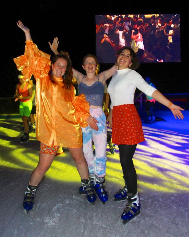 DISCO: Meg Wright, Grace McCabe and Emma Condliffe having a good time at the Convention Centre ice rink last year. PIC: PHIL WILLIAMS 383317_09