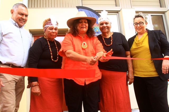 OPEN: The ribbon floats to the ground after being cut by Senator Marlarndirri McCarthy to open the new accommodation at Apmere Mwere. (PIC: PHIL WILLIAMS 517198_09