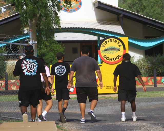 ADMIN: Yipirinya staff walk towards an uncertain future ahead of news of wholesale redundancies at the school earlier this month. (PIC: PHIL WILLIAMS 517442_02)