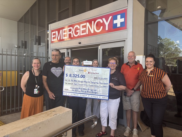 SMILEY: The Rotary Club of Alice Springs and the Community Bank Alice Springs with hospital staff and the donation that helped purchase the Smileyscope VR headset.