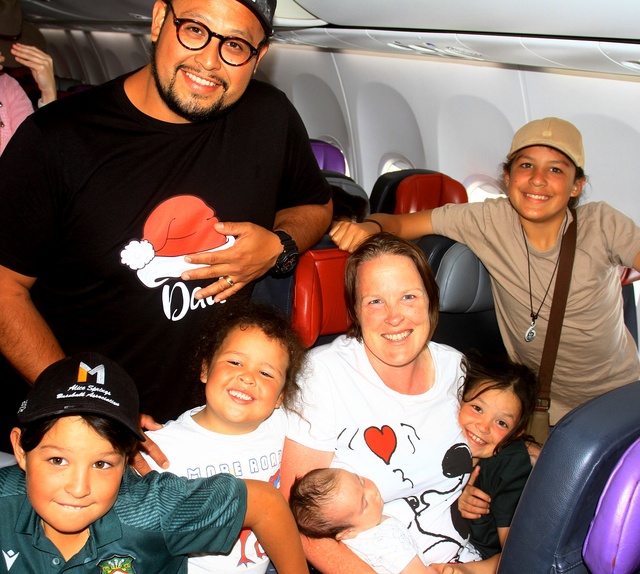 GRATEFUL: The Siguenza family are all smiles after landing back in Alice Springs in 2025 after their shocking ordeal just before Christmas 2024. (PIC: PHIL WILLIAMS)