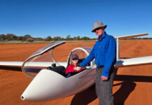 Celebrating triumph and determination is solo flyer Max Waddell, who has just completed her first-ever solo flight in a glider.