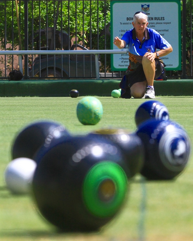 CLOSE WATCH: Sharon Innes keeps a close watch as her bowl approaches the head . (PHIL WILLIAMS 516117)